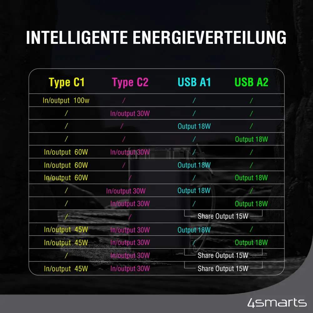 • Blitzschnelle Aufladung: Mit 100 W kannst du mehrere Geräte wie USB-C Notebooks, Tablets und Smartphones schnell aufladen