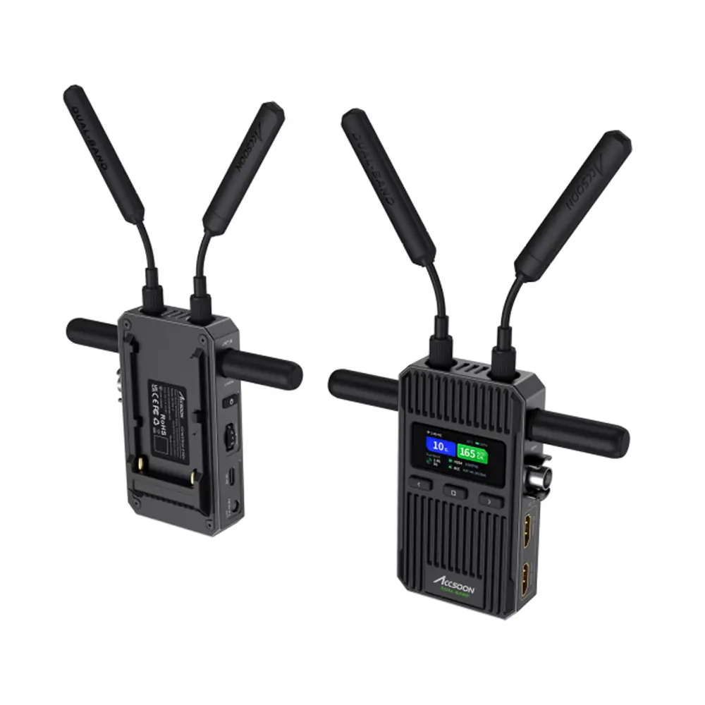 Der CineView 2 ist das neueste Mitglied der geschätzten CineView-Produktfamilie von Accsoon. Der CineView 2 basiert auf der von Accsoon US patentierten 2,4GHz+5GHz Dual-Band Technologie und verfügt über ein völlig neues Antennendesign. Er kann 1080P 60fps Video- und Audiosignale über eine Sichtweite von 450m (1500ft) nahtlos übertragen und hat dabei eine beeindruckend niedrige Latenz von unter 50ms.