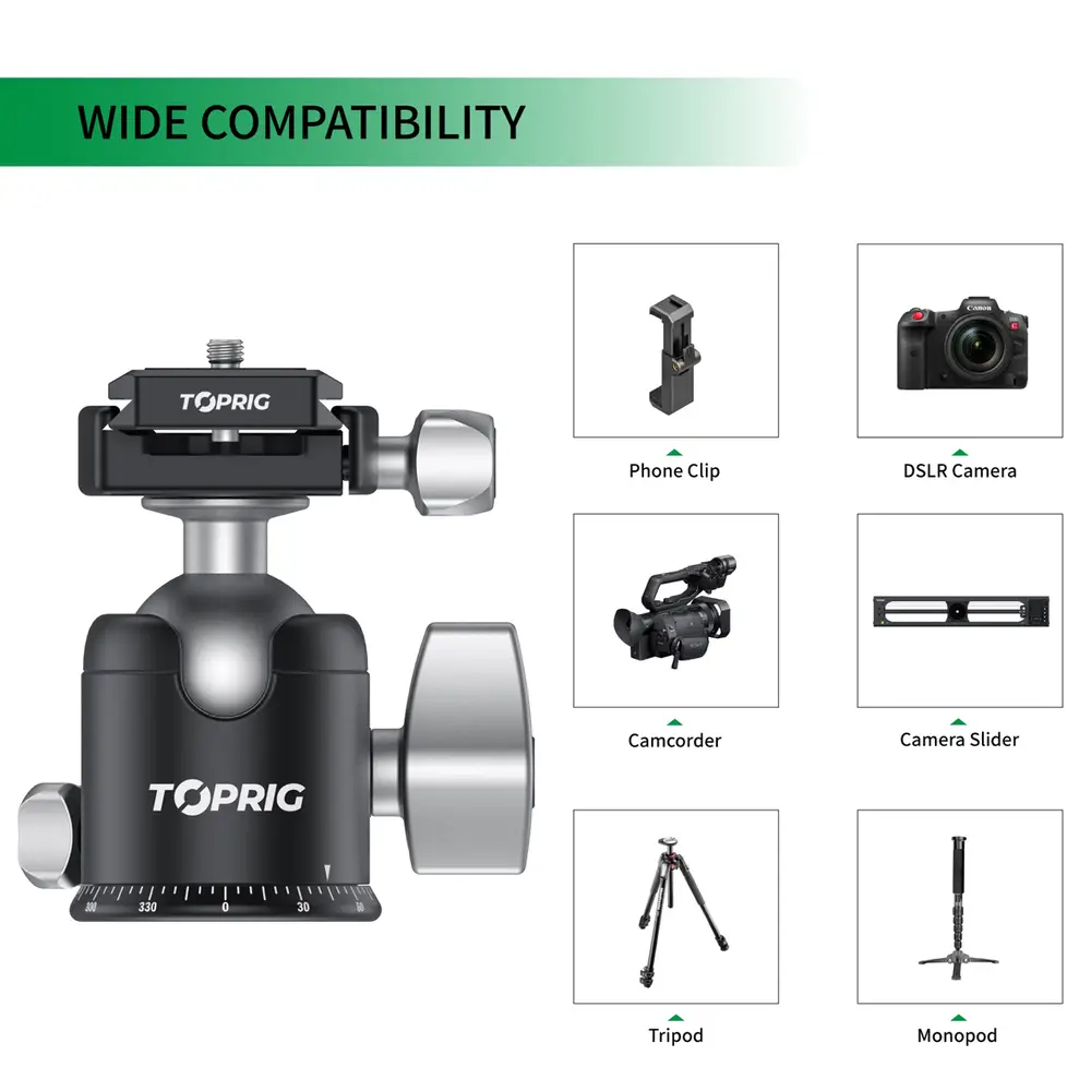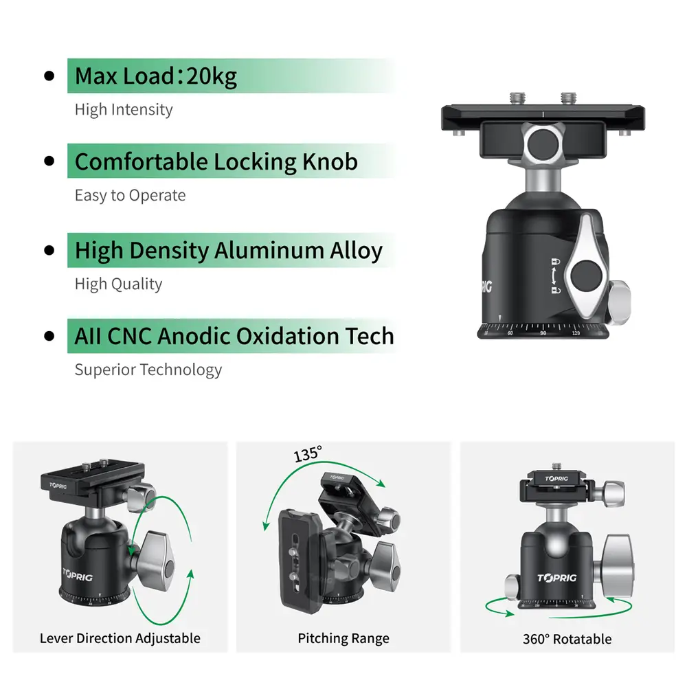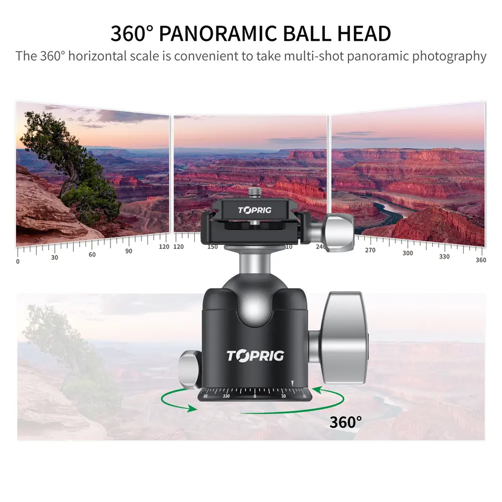 Hauptmerkmale• Leistungsstarker Kugelkopf• 360° Panorama-Aufnahme• Breite Kompatibilität• Schnellwechselplatte