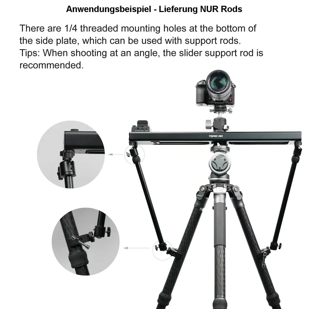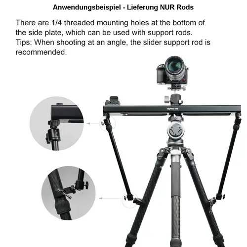 An der Unterseite der Seitenplatte befinden sich Befestigungslöcher mit 1/4-Gewinde, die mit Stützstangen verwendet werden können.