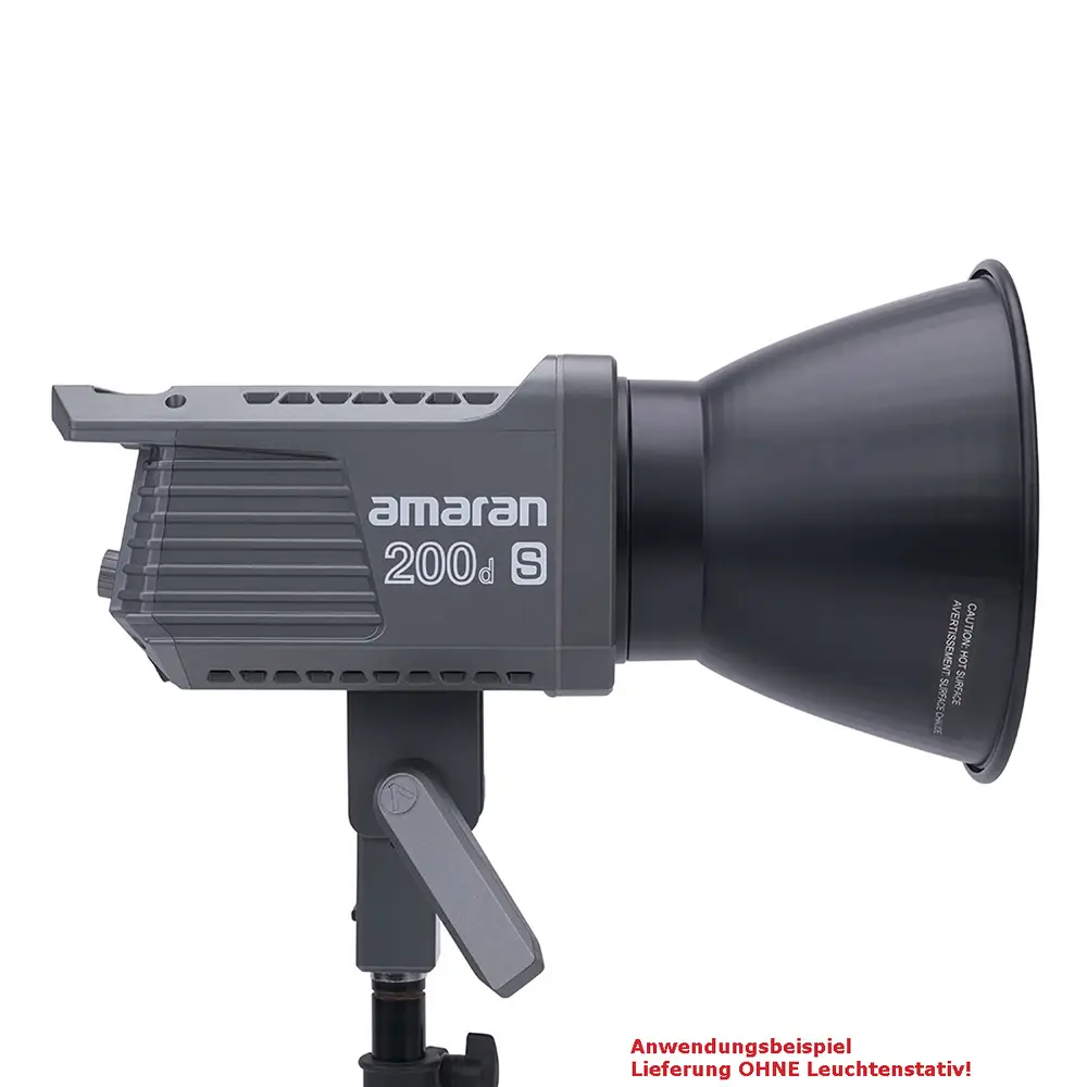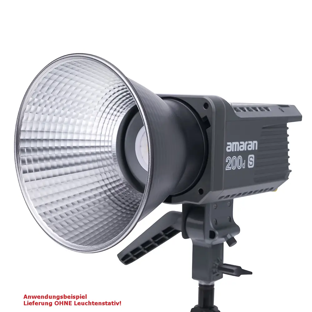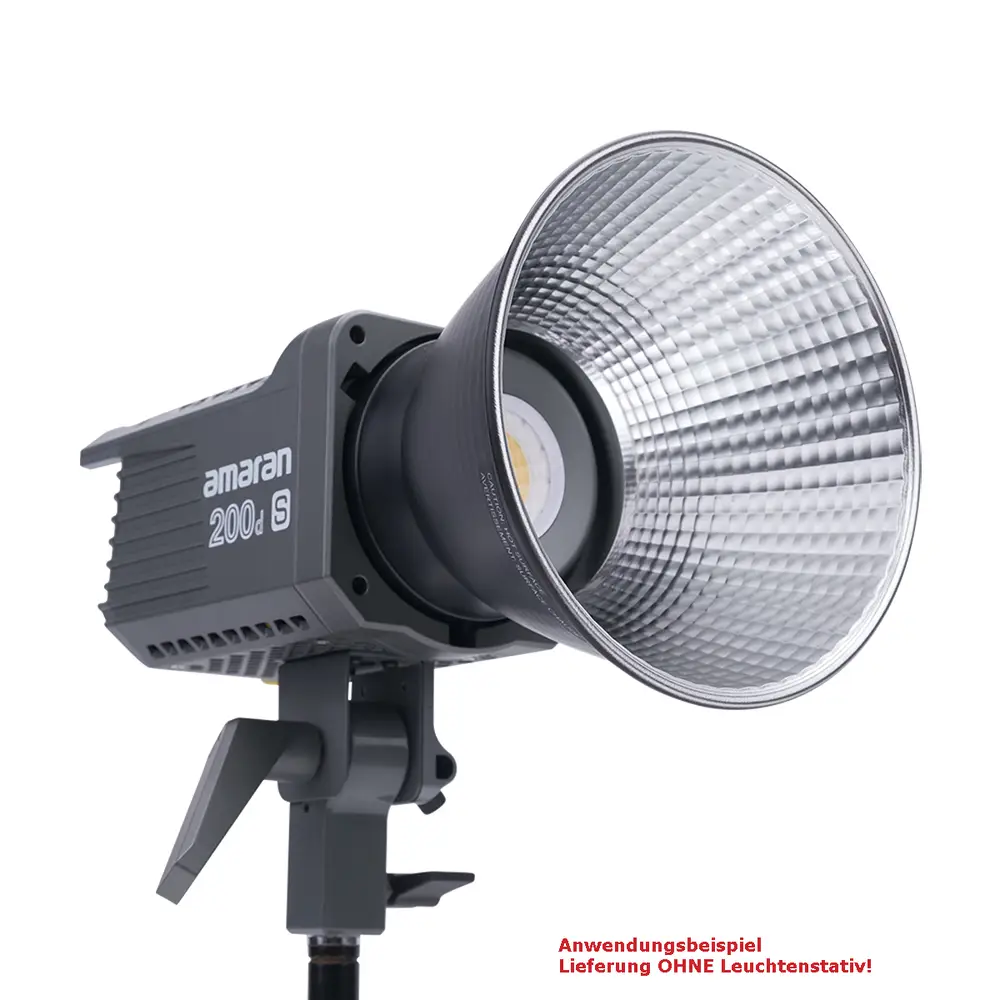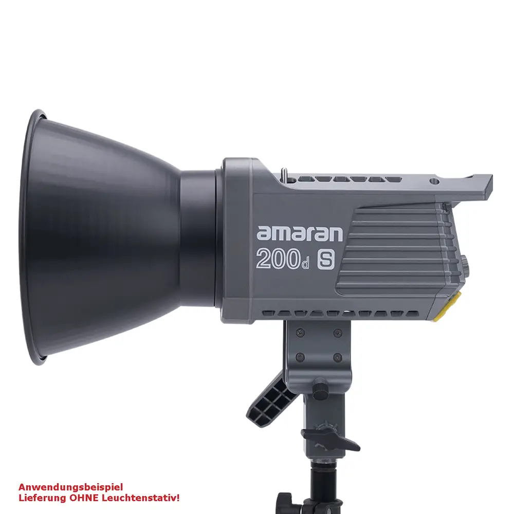 Dank des neuen Dual-Blau-LED-Chipsatzes bietet der 200d S eine noch bessere Spektralwiedergabe mit einem sehr hohen SSI (D56) von 87 – eine SSI-Steigerung von 17,5% gegenüber dem Vorgängermodell. Die Farbwiedergabe ist sehr exakt mit erhöhten Werten bei CRI [96], TLCI [99], TM30 RF [95] und TM-30 RG [103]. Durch den universellen Bowens-Mount ist der amaran 200d S mit zahlreichen gängigen Lichtformern kompatibel, darunter der Light Dome SE, der Light Dome Mini II und die Aputure Lantern. Das macht diesen LED-Strahler zu einem ausgesprochen vielseitigen Multi-Tool. Darüber hinaus bietet der 200d S eine im Lampenkopf integrierte Schirmhalterung.