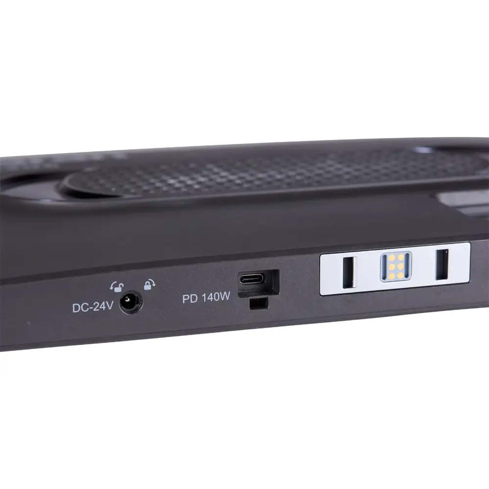 Für kabellose, mobile Setups lässt sich die amaran Ace E-Lock-Schnellwechselhalterung mit der (optional erhältlichen) amaran Peak1-Powerbank verbinden, die an jedem Ort Strom bei voller Kapazität ohne Spannungsabfall liefert.