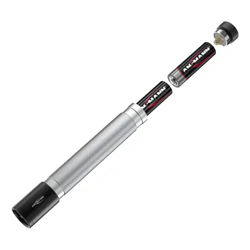 Der Energieverbrauch der Daily Use 150B Taschenlampe ist erstaunlich gering. Die Energiequelle (2x Mignon AA / LR6 Batterien - im Lieferumfang enthalten) liefert für bis zu Licht. Das Gehäuse besteht aus äußerst robustem Flugzeugaluminium und steckt auch Staub, Erschütterungen und Stürze aus großer Höhe locker weg. Die Lieferung erfolgt im Set inklusive Ansmann Alkaline-Batterien und Trageschlaufe.