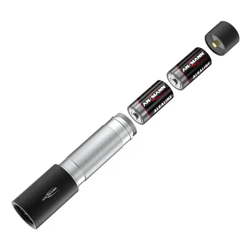 Der Energieverbrauch der Daily Use 300B Taschenlampe ist erstaunlich gering. Die Energiequelle (2x Baby C / LR14 Batterien - im Lieferumfang enthalten) liefert für bis zu Licht. Das Gehäuse besteht aus äußerst robustem Flugzeugaluminium und steckt auch Staub, Erschütterungen und Stürze aus großer Höhe locker weg. Die Lieferung erfolgt im Set inklusive Ansmann Alkaline-Batterien und Trageschlaufe.
