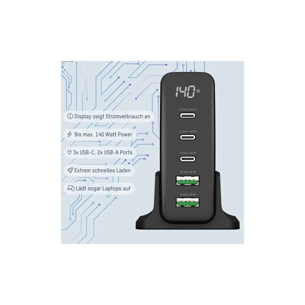 • USB-Desktop Ladegerät mit 5 USB-Ports und 140 W
