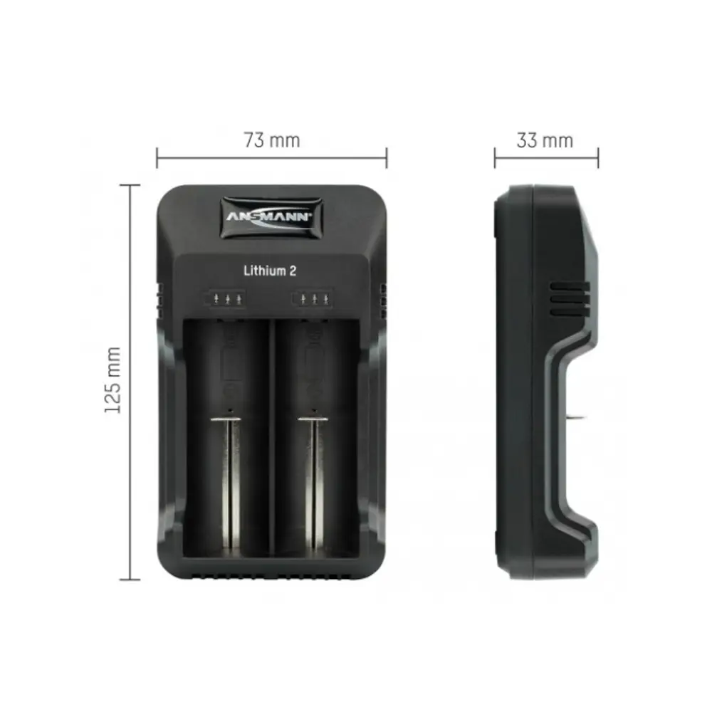 Aufladen und wieder verwendenEinwegbatterien sind auf Dauer eine große Belastung - sowohl für den Geldbeutel wie auch für die Umwelt. Speziell für Lithium-Batterien muss der Verbraucher tief in die Tasche greifen. Warum also nicht umstellen auf die wiederaufladbaren Akkus, die in allen Baugrößen erhältlich sind. Damit sich die Investition in einen Akku auch auf Dauer lohnt, ist es wichtig ein Ladegerät zu verwenden, das die Akkus optimal lädt und deren Lebenszeit dadurch erheblich verlängert.Für alle gängigen AkkugrößenSpeziell im Lithium-Segment werden eine Vielzahl von Akkugrößen angeboten. Mit dem Lithium 2 Ladegerät von ANSMANN entscheiden Sie sich für den universellen Allrounder mit bestem Preis-Leistungsverhältnis. Mit den beiden Ladeschächten können Sie 1-2 Li-Ion Akkus der Baugrößen 26650, 22650, 18650, 18500, 17670, 16340, 14500 uvm. oder 1-2 NiMH Mignon AA / Micro AAA Akkus unabhängig voneinander laden. Das Gerät erkennt den eingelegten Akku vollkommen automatisch und ohne lästiges Einstellen. Der Ladevorgang beginnt direkt, nachdem Sie die Zelle polrichtig eingelegt haben.Länger Spaß mit dem AkkuDamit Ihr Akku seine Leistung auch nach vielen Ladezyklen noch optimal abgeben kann ist es wichtig, dass er stets schonend und sicher geladen wird. Das Lithium 2 Ladegerät von ANSMANN hat eine hochwertige, microcontroller gesteuerte Ladetechnik verbaut, die den Akku auf mehrfache Art und Weise vor raschem Verschleiß schützt. Dazu zählt u.a. die automatische Abschaltung des Ladevorgangs, sobald die Zelle voll aufgeladen ist, sowie die schonende Erhaltungsladung für NiMH Zellen nach dem eigentlichen Ladevorgang. Besonders Lithium Zellen sind aufgrund ihrer hohen Energiedichte besonders vorsichtig zu behandeln. Die spezielle Elektronik im Lithium 2 Lader von ANSMANN garantiert Sicherheit auf höchstem Niveau.Smarte ExtrasFür das unkomplizierte und schnelle Ablesen des Ladestandes Ihrer Akkus ist eine farbige LED Anzeige über jedem Schacht integriert. Diese zeigt Ihnen auch falsch herum eingelegte Akkus an. Der Lithium 2 Lader von ANSMANN kann mit jedem handelsüblichen 5V 1A USB Adapter betrieben werden. Für eine optimale Ladung empfiehlt ANSMANN den 2.4A USB High Speed Lader mit Smart IC, wodurch sich die Ladezeit der Zellen fast halbieren lässt.Lieferumfang: 1x Lithium 2 Battery Universalladegerät, 1x Micro USB Ladekabel / Intelligentes Akku-Ladegerät für aufladbare Batterien von E Zigarette, E Shisha, LED Taschenlampen, Stirnlampe & Vape