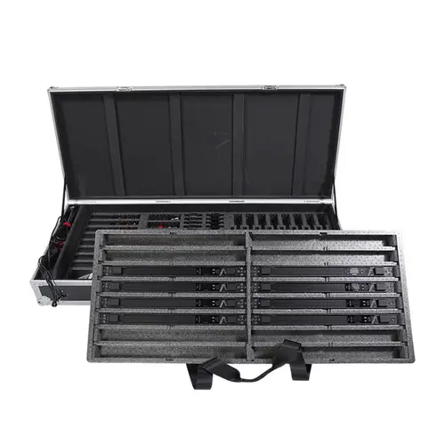 Das 8-Light Kit erweitert die Möglichkeiten dieses mittelgroßen Multitools nicht nur um die achtfache Lichtmenge, sondern auch um zusätzliche Stromkabel, Adapter und Gitter-Lichtformer in einem robusten Flightcase. Das 8-Light Kit kann nicht nur den Akku jeder Leuchte einzeln aufladen. Dank eines 330-Watt-Stromadapter mit 8-fach Verteiler lassen sich die Akkus aller acht Leuchten gleichzeitig laden.