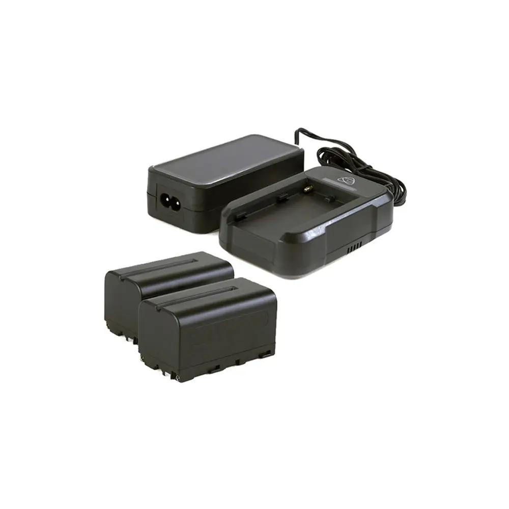 Das Atomos Power Kit 2 beinhaltet zwei NP-F750 5200mAh Akkus, ein Ladegerät und ein Netzteil mit Verriegelungsstecker für Atomos Rekorder/Monitore wie Ninja V, Shogun Inferno und Flame. Das Kit ermöglicht ein schnelles Laden der Akkus nacheinander und die integrierte Anzeigeleuchte zeigt den Ladezustand an.