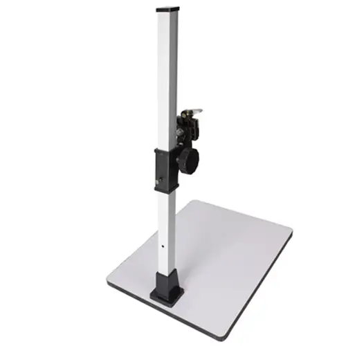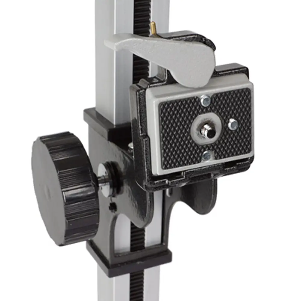 Für einen optimalen Arbeitsablauf mit überzeugenden Ergebnissen kann die Kameraposition - und somit der Abstand zum Objekt - dank der Zahnstange sehr fein eingestellt werden. Die Grundplatte verfügt über vier gummierte Füße, die auf glatten Oberflächen ein mögliches Rutschen verhindern.