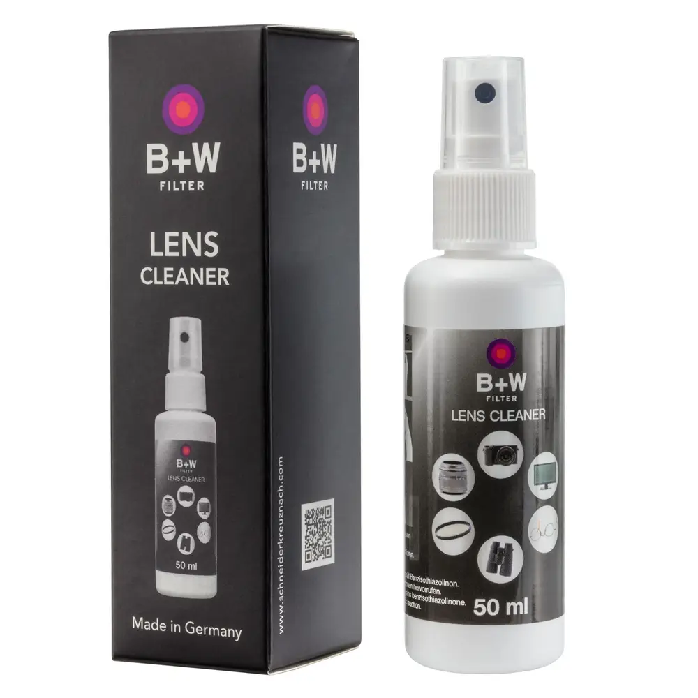 Fest anhaftenden Schmutz auf hochempfindlichen optischen Oberflächen kann ein Tuch alleine nicht entfernen. Dafür wurde der B+W Lens Cleaner entwickelt, eine flüssige nichtalkoholische Reinigungslösung mit stark reinigungsaktiven Wirkstoffen, die keine störenden Rückstände auf dem Glas hinterlassen. Der B+W Lens-Cleaner wird in einer kompakten 50 ml Kunststofflasche als Pumpspray ohne Treibgas geliefert. Der B+W Lens-Cleaner ist einfach in der Anwendung, nicht brennbar und umweltfreundlich. Unentbehrlich für jeden Fotografen.