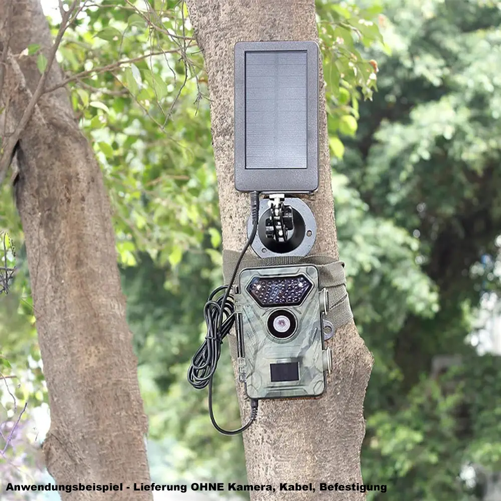 Möchten Sie verhindern, dass sich Ihre Wildkamera zu schnell entleert oder Sie die Batterien zu oft austauschen/aufrüsten müssen? Dann verwenden Sie das Camouflage Solarpanel, das perfekt mit fast allen Camouflage Wildkameras funktioniert!