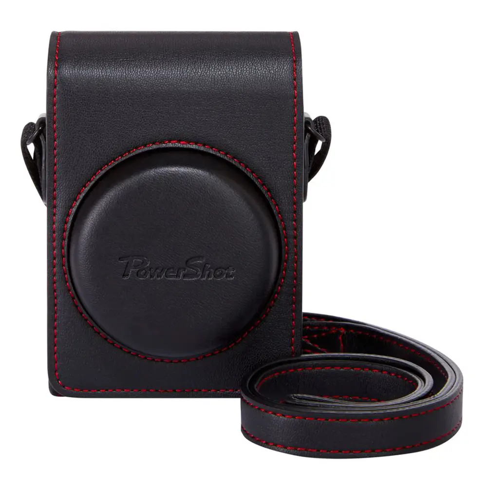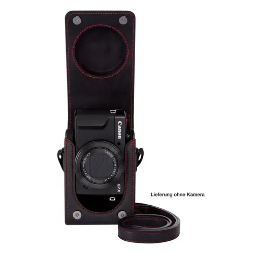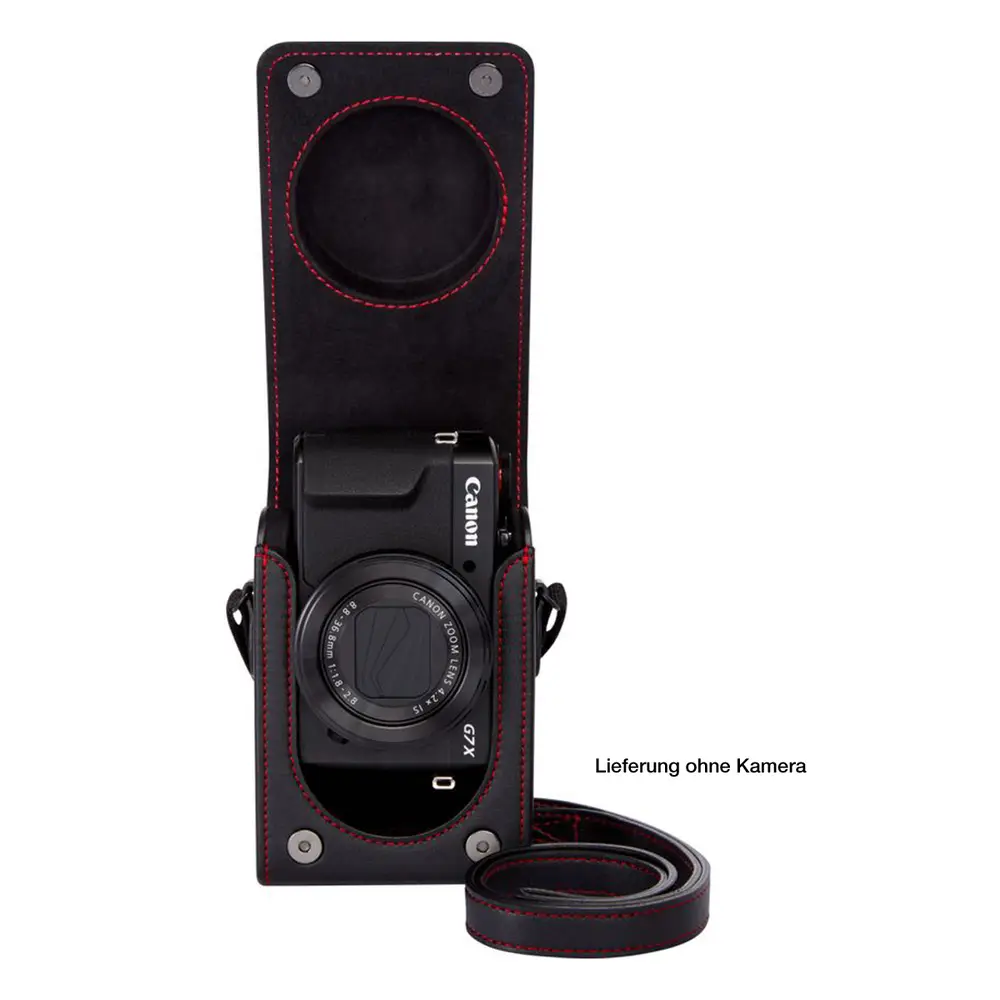 Tasche mit roten Kontrastnähten inkl. Tragegurt, passend für PowerShot G7XII