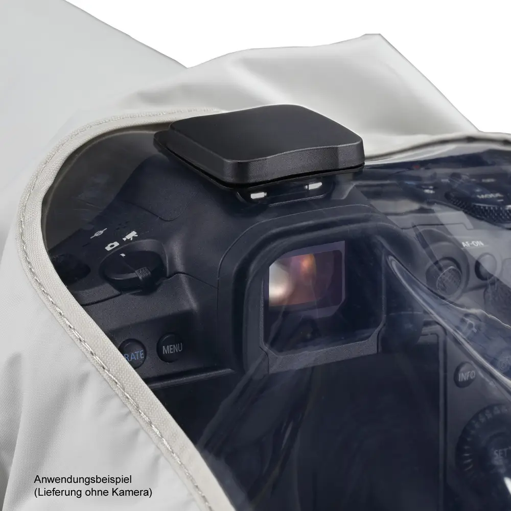 • Diese Schutzabdeckung schützt deine EOS R1 und EOS R5 Mark II Kamera vor Regen, damit du auch bei schlechtem Wetter weiter fotografieren kannst.