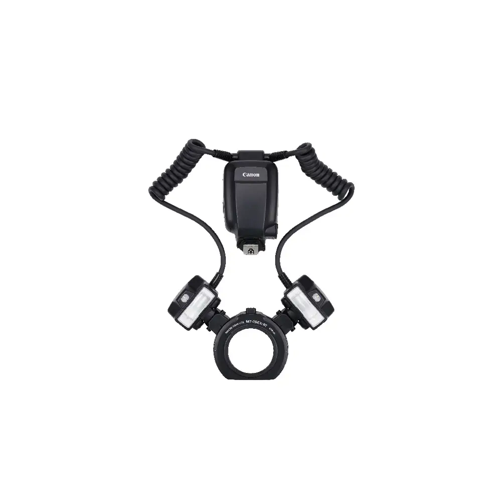 Leistungsstarkes und anpassbares Makro-Doppelblitzgerät für eine exzellente NahausleuchtungMit diesem leistungsstarken, präzisen und hochgradig flexiblen Doppelblitzgerät machen Sie Makro- und Nahaufnahmen voller Details. Es bietet eine besonders kurze Aufladezeit für die kreative Ausleuchtung kleiner Motive und die maximale Kontrolle über Lichtstärke und Lichtrichtung in allen Situationen, in denen es darauf ankommt.Doppel-Blitzgerät mit kurzer AufladezeitJede Leuchte kann individuell auf dem Haltering positioniert und eingestellt werden, so dass es perfekt zum Motiv passt. Sie lassen sich von der Halteschiene abnehmen und können dank integriertem Stativsockel auf externen Haltern wie Kamera- oder Lampenstativen angebracht werden.Extrem helle LEDsDie Helligkeit der AF-Hilfslichter lässt sich verstellen, was die Fokussierung und die Ausrichtung vor der Aufnahme erleichtert. Die Hilfslichter werden mit einem doppelten Drücken des Kameraauslösers aktiviert.Steuerung per Infrarot oder FunkDas Doppelblitzgerät lässt sich auch als Master-Blitz einsetzen und so weitere Speedlites per Funk oder per Infrarot auslösen.Kreative Ausleuchtung mit Custom-FunktionenSteuern Sie die Schattenhärte mit dem speziellen Bounce-Adapter. Benutzerdefinierte Einstellungen zur Steuerung verschiedener Aspekte der Blitzleistung wie z. B. Helligkeit des AF-Hilfslichts oder die Blitzintensität können individuell konfiguriert werden.Intuitive optimierte BedienungDie gleichen Bedienelemente, die auch bei anderen Speedlites zu finden sind, erhöhen die Einsetzbarkeit dieses Blitzgeräts. Ein stabiler Steckfuß aus Metall mit Feststellschalter gewährleisten eine zuverlässige Verbindung zur Kamera.
