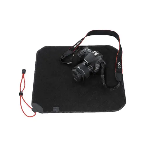 Wickeln Sie Kamera / Objektiv in dieses Schutztuch, damit die Ausrüstung unterwegs unbeschadet bleibt. Mit Befestigungsband.