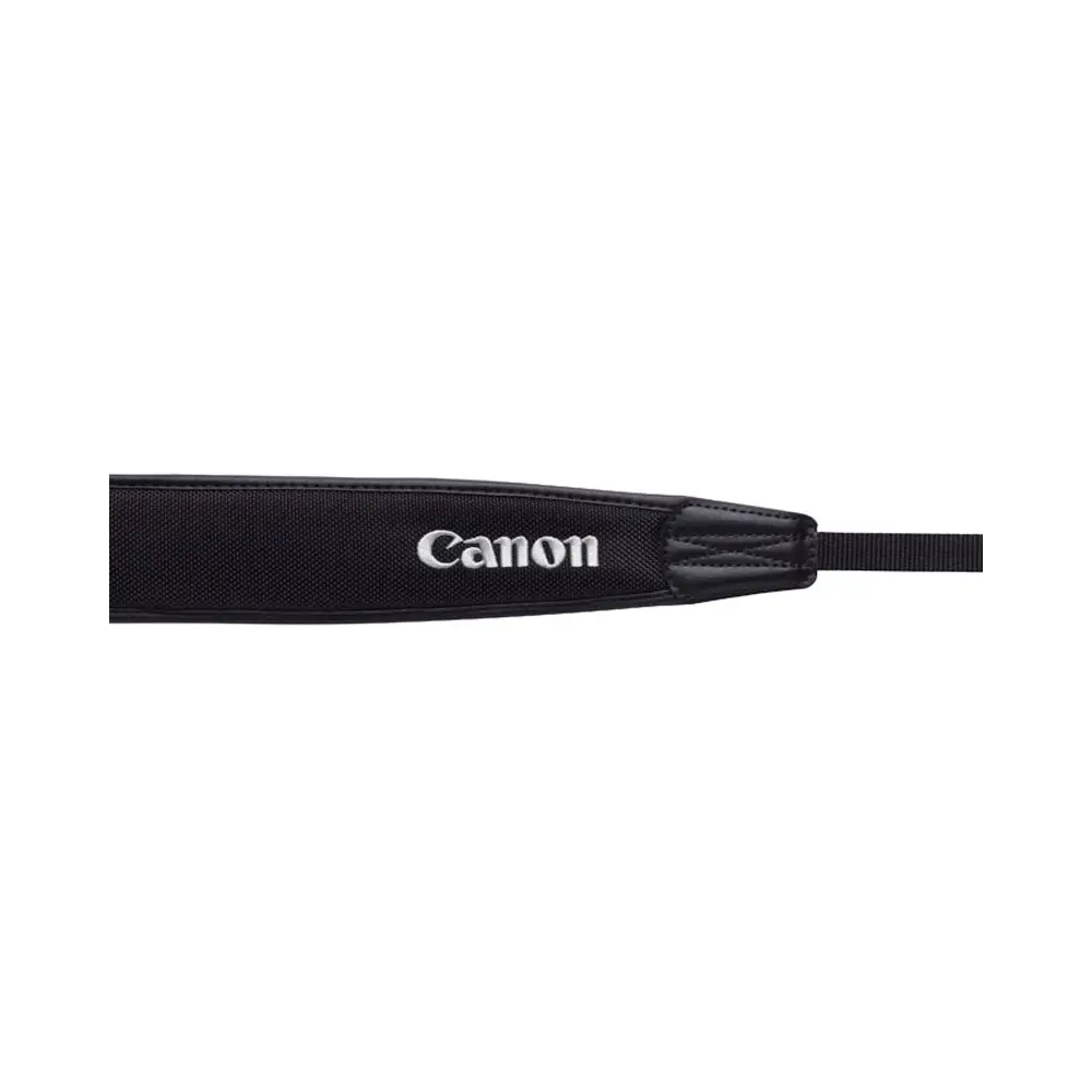 Aus schwarzem, festen Gewebe mit weißem Canon-Schriftzug.