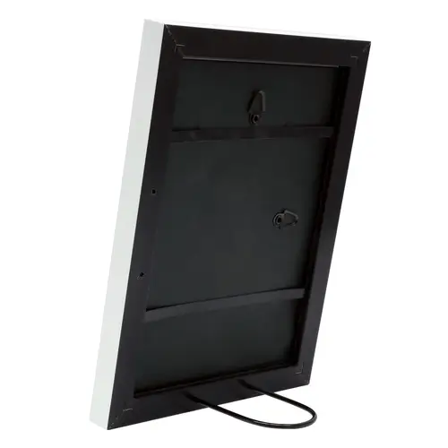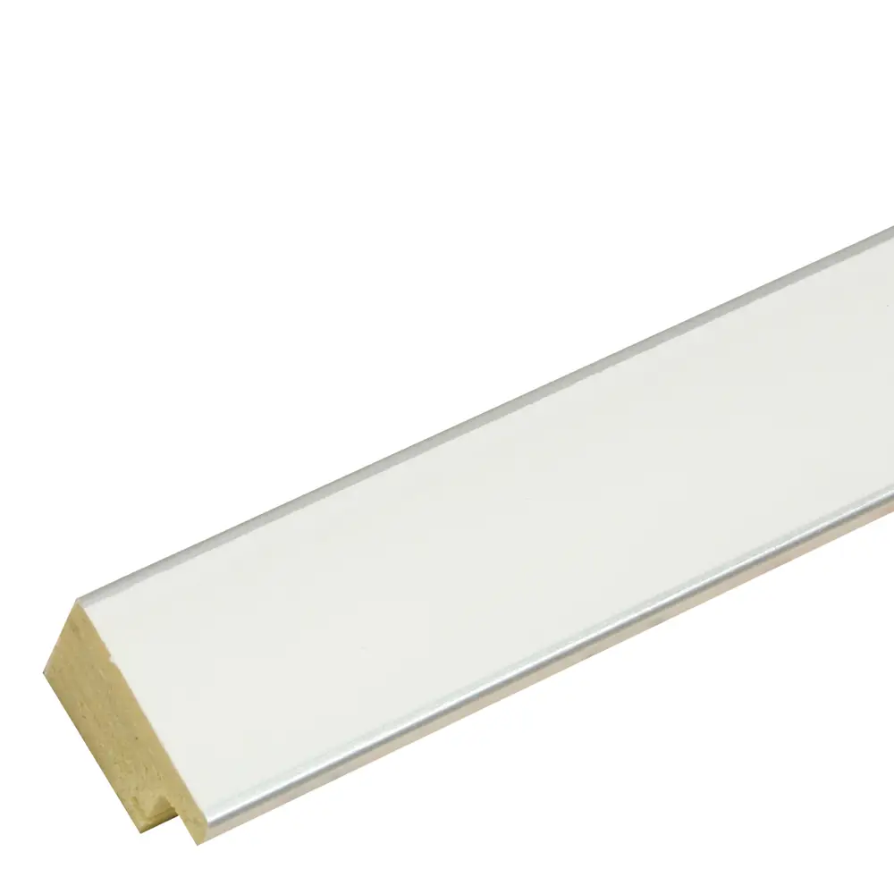 Kunststoffrahmen in weiß mit silberner Innenkante, der sich durch seine zeitlose Eleganz auszeichnet und perfekt zu einem modernen sowie klassischen Interieur passt. Ist mit klarem Qualitätsglas versehen.