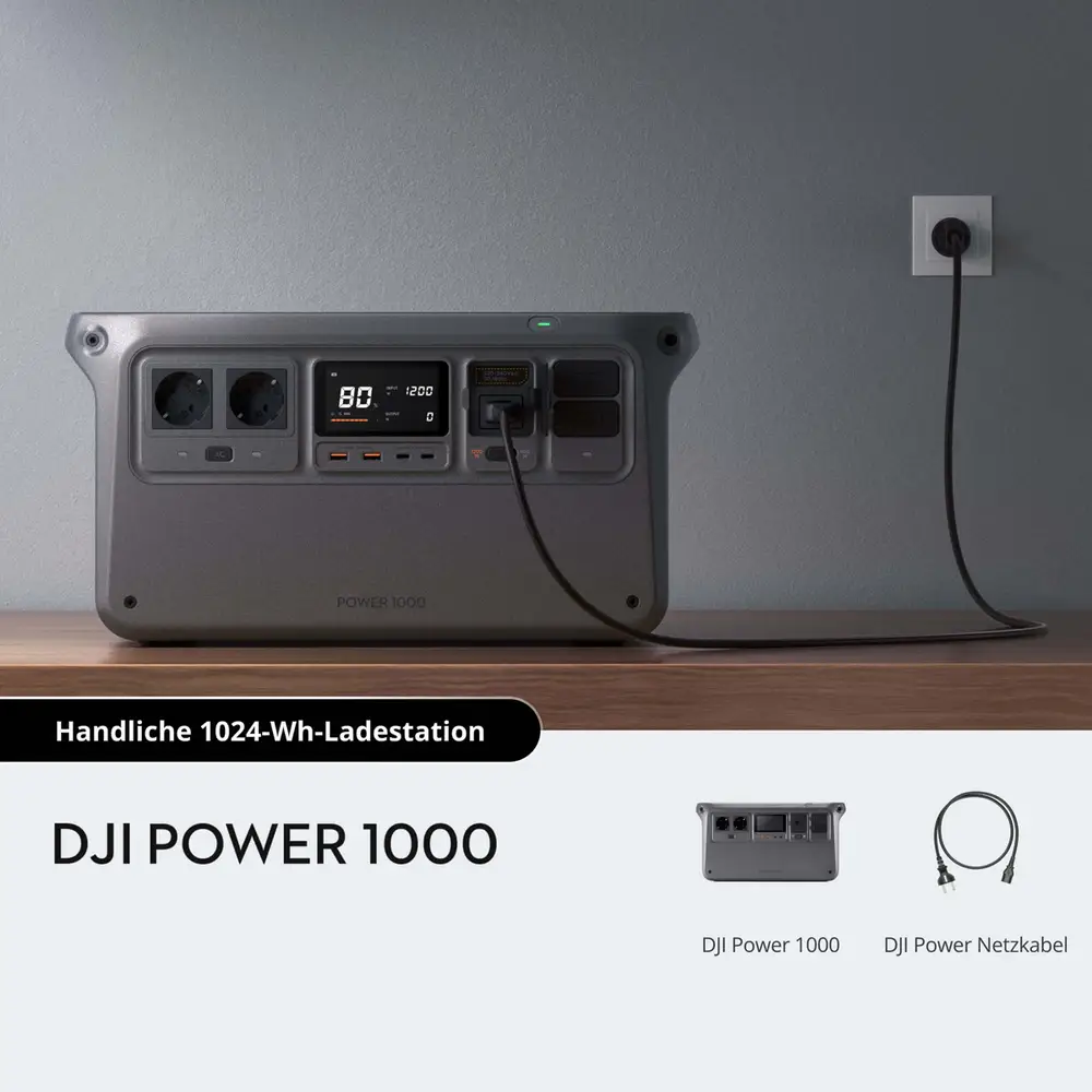 Stabile Stromversorgung mit DJI Power 1000: 1.024 Wh Akkukapazität, 2.400 W max. Ausgangsleistung [1] und Schnellladung diverser DJI-Drohnen.
