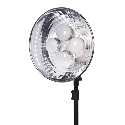 Im Lieferumfang enthalten:• 2x 16" Reflektoren• 2x Stoff-Diffusoren• 2x Leuchtstative• 8x 25W LED-Birnen