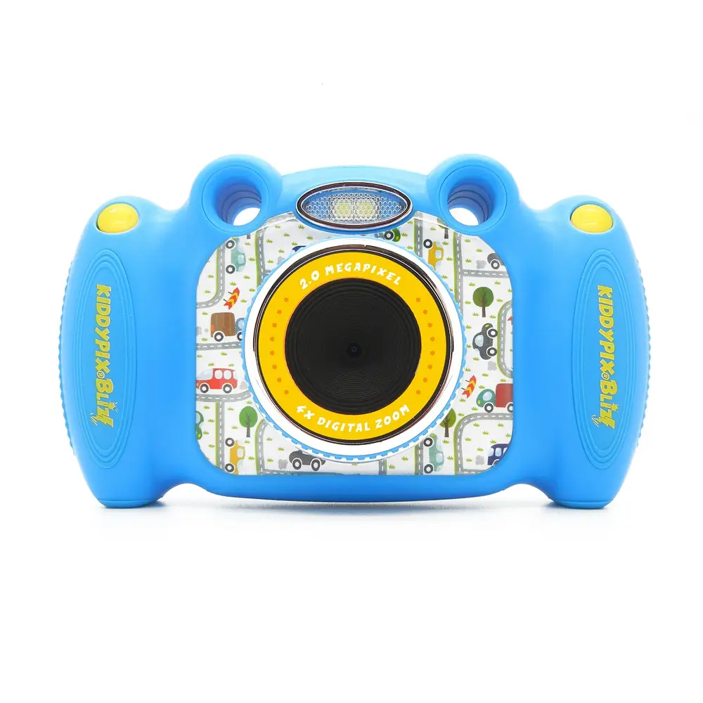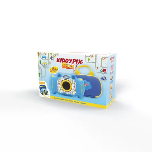 Die Kiddypix Blizz ist eine duale Kinderkamera, d.h. sie hat gleich zwei Kameras: eine auf der vorderen Seite und eine auf der Rückseite. Mit der vorderen Kamera können die kleinen Fotografen Fotos mit bis zu 8 Megapixeln schießen.