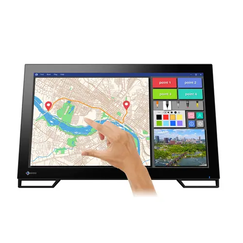 Der Monitor kann bis zu zehn Berührungen gleichzeitig verarbeiten, sodass er von mehreren Personen simultan bedient werden kann. Der Touch-Screen ist darüber hinaus mit einer Handballenerkennung ausgestattet. Während des Schreibens können Nutzer ihre Hände oder Arme auf den Monitor ablegen, ohne versehentlich eine Eingabe auszulösen.