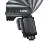 • Kompatibilität und Zubehör. Ausgestattet mit einem integrierten Godox X 2,4-GHz-Sender und -Empfänger kann der V100 von jedem Godox X-Systemsender ausgelöst und gesteuert werden. Er kann auch als Master-Gerät fungieren und andere Blitze steuern. Das einfache Koppeln mit einer Berührung ermöglicht eine nahtlose Integration mit dem Godox X3-Auslöser oder anderen Godox-Leuchten. Der V100 ist kompatibel mit einer Vielzahl von Zubehörteilen, die separat im Godox-System erhältlich sind, darunter das magnetische Zubehörset AK-R1, der Projektionsaufsatz AK-R21, die Kuppel AK-R22 und die S2-Halterung für die Montage von Bowens-Modifikatoren.