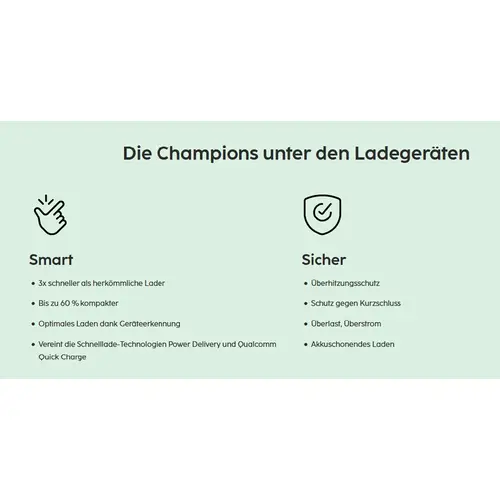 - Ladeadapter mit der Schnellladetechnologie Power Delivery, unterstützt zusätzlich Qualcomm® Quick Charge™ 2.0/3.0