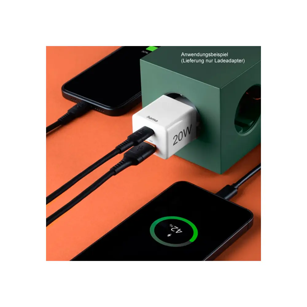 Hama 20W Schnellladegerät, 1x USB-C PD, 1x USB-A QC, Mini Ladegerät, weiß