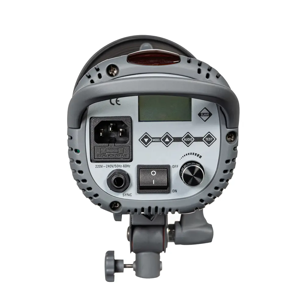 Mit der großen Digital-Anzeigen auf der Rückseite sind alle wichtigen Parameter immer im Blick. Eine leise Gebläsekühlung ermöglicht effizientes Arbeiten auch im Dauerbetrieb. Dank des universellen Zubehörbajonetts an der Front steht eine breite Palette an verschiedensten Lichtformern aus dem HELIOS-Sortiment zur Auswahl. Aber auch Fremdzubehör mit Bowens-Bajonett kann an den Blitzgeräten genutzt werden. Die Blitzgeräte passen auf alle Leuchtenstative mit Spigot-Bolzen und besitzen einen Schwenkfuß mit integriertem Schirmhalter.