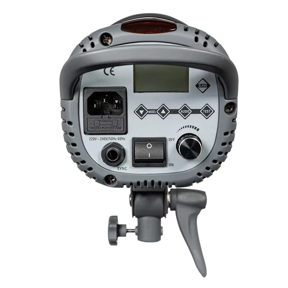 Mit der großen Digital-Anzeigen auf der Rückseite sind alle wichtigen Parameter immer im Blick. Eine leise Gebläsekühlung ermöglicht effizientes Arbeiten auch im Dauerbetrieb. Dank des universellen Zubehörbajonetts an der Front steht eine breite Palette an verschiedensten Lichtformern aus dem HELIOS-Sortiment zur Auswahl. Aber auch Fremdzubehör mit Bowens-Bajonett kann an den Blitzgeräten genutzt werden. Die Blitzgeräte passen auf alle Leuchtenstative mit Spigot-Bolzen und besitzen einen Schwenkfuß mit integriertem Schirmhalter.