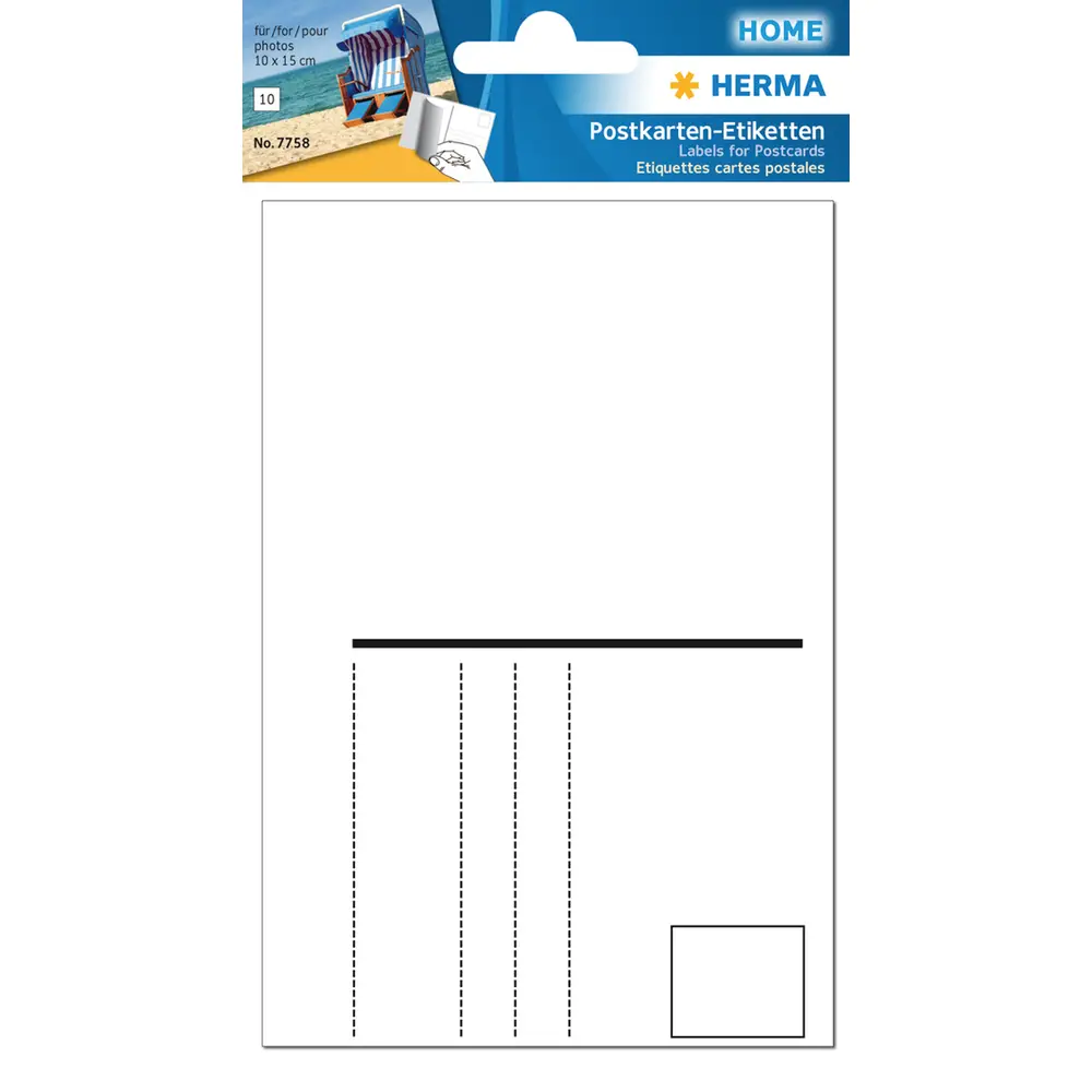Selbstklebende Etiketten mit postalischem Aufdruck. Fotofreundliches Material, nicht durchscheinend. Machen aus Fotos (10 x 15 cm) oder anderen Abbildungen persönliche Postkarten.