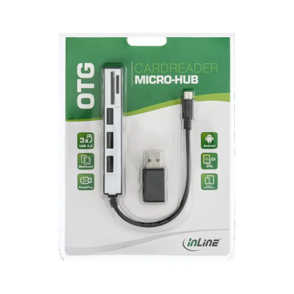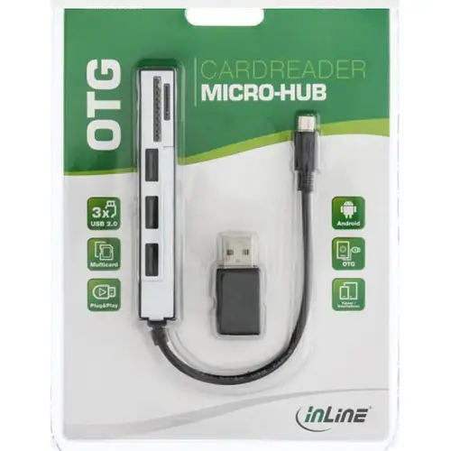 Highlights:• Schnittstelle: USB Micro-B Stecker • Chip: FE1.1s + MA8170 • Slots: SD + microSD + 3x USB A Buchse • Übertragungsgeschwindigkeit: bis zu 480Mb/s • Für Android ab Version 4.0 • Material: ABS Kunststoff • Gewicht: nur ca 20g, ca. 15cm Kabellänge • Abmessungen (LxBxH): ca. 98x17x17mm • inkl. USB Adapter Typ A Stecker auf Micro-B Buchse, hiermit kann der OTG Cardreaderan einem normalen PC betrieben werden • unterstützte Speicherkarten: SD, SDHC, SDXC, microSD, michroSDHC, microSDXC und die Varianten hiervon