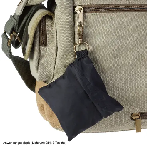 • Mit diesem Regenschutz bleibt Ihre wertvolle Kameraausrüstung in der Fototasche auch bei schlechter Witterung optimal geschützt. Einfach den Regenschutz über die Tasche ziehen und mit Klett schließen.• Durch die praktische Wendemöglichkeit erzielt man mit der silbernen 'Heat-Protect'-Beschichtung einen zusätzlichen Schutz vor heftiger Sonneneinstrahlung im Sommer.• Der Überzug ist universell passend für viele Taschen mit den Abmessungen bis B30 x H23 x T15cm, wie z.B. kalahari MAKOBA M-21, KAAMA LS-23 und LS-31.• Die Lieferung erfolgt im kleinen Transportbeutel mit Karabinerhaken zum Anhängen an die Tasche.