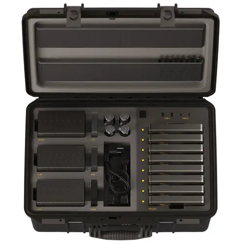 1x Koffer mit integrierter Ladevorrichtung, Kaltgerätekabel und D-Tap Stromkabel