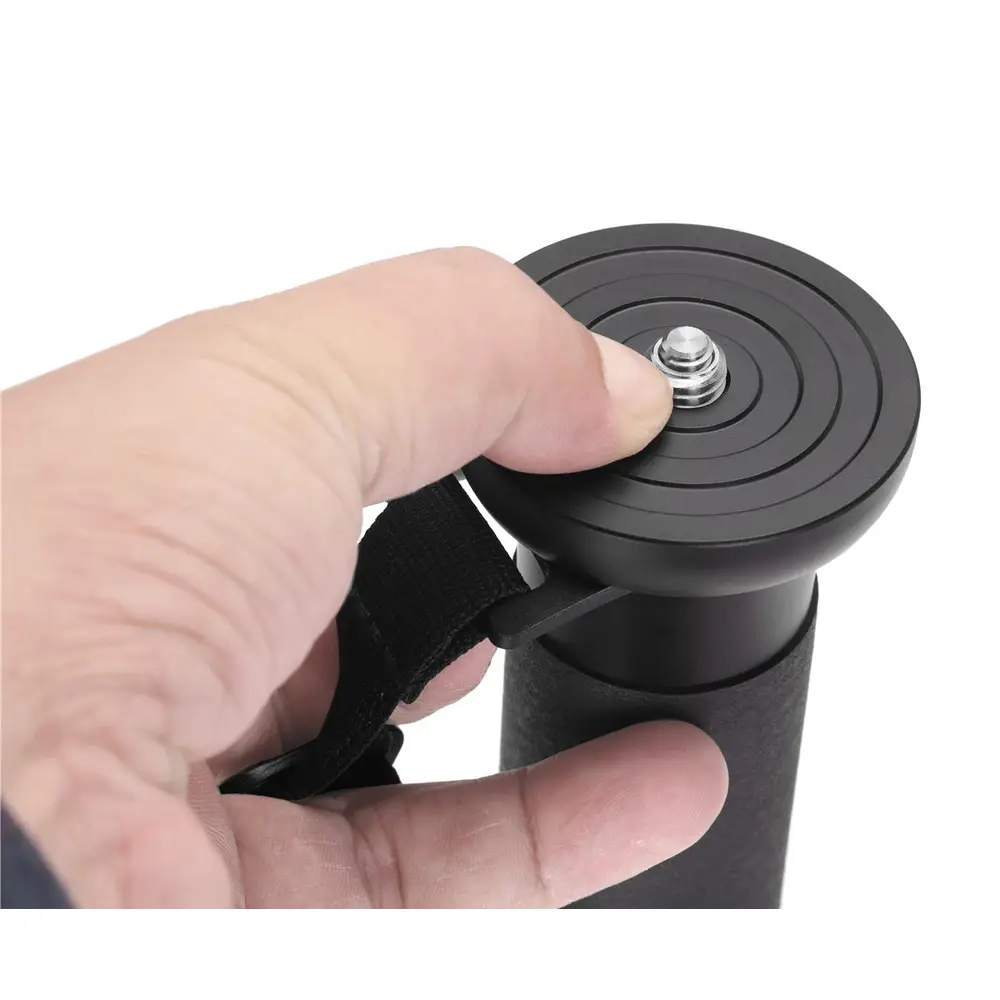Weil auch das Packmaß mit 430 mm schön kurz bleibt, ist dieses Einbeinstativ rundherum ein idealer Begleiter für die Sport- und Action-Fotografie. Apropos, rundherum: die fünf runden Beinsegmente mit den Durchmessern 28, 25, 22, 19 und 17 mm sind dank Carbon nicht nur sehr leicht. Wegen der besonders präzisen Verarbeitung dieses exzellenten Werkstoffs lassen sie sich samtig weich bewegen und verdrehen sich auch ganz sicher nicht. Buchstäblich im Handumdrehen lassen sich die gummierten Drehverschlüsse lösen oder feststellen. Die Stativplatte krönt eine Kombischraube mit ¼“- und 3/8“-Gewinde. Natürlich könnte man vielerlei Köpfe daran festmachen.