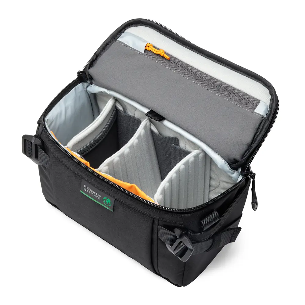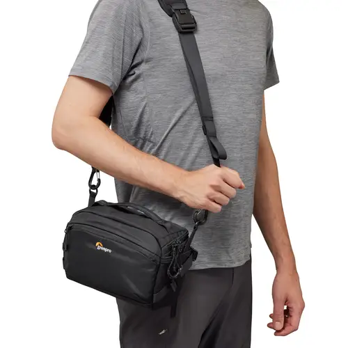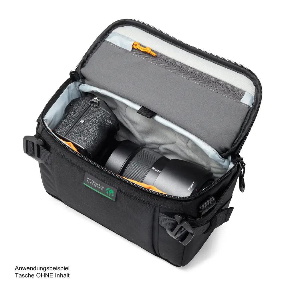 Die ProTactic Lite SLX 110 AW III aus der ProTactic III Kollektion von Lowepro wurde für Fotografen entwickelt, die eine vielseitige Umhänge- oder Schultertasche suchen. Die Tasche fasst eine spiegellose Vollformatkamera mit angesetztem 24-70 mm f2.8-Objektiv mit Festbrennweite und dank der Trennwände lassen sich kleinere Objektive und andere Teile gut verstauen. Sie kann als eigenständige Tasche oder als Einsatz für ProTactic Lite Rucksäcke verwendet werden.