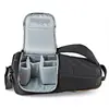 Einfache Handhabung und mehr Sicherheit. Durch Ziehen der Slingtasche nach vorne, kann der seitliche Reißverschluss geöffnet werden und man kann die Kamera aus der Tasche holen, ohne diese abzulegen. Der volle Zugriff auf das Kamerafach von hinten verhindert unerwünschten Fremdzugriff, während die Tasche getragen wird.