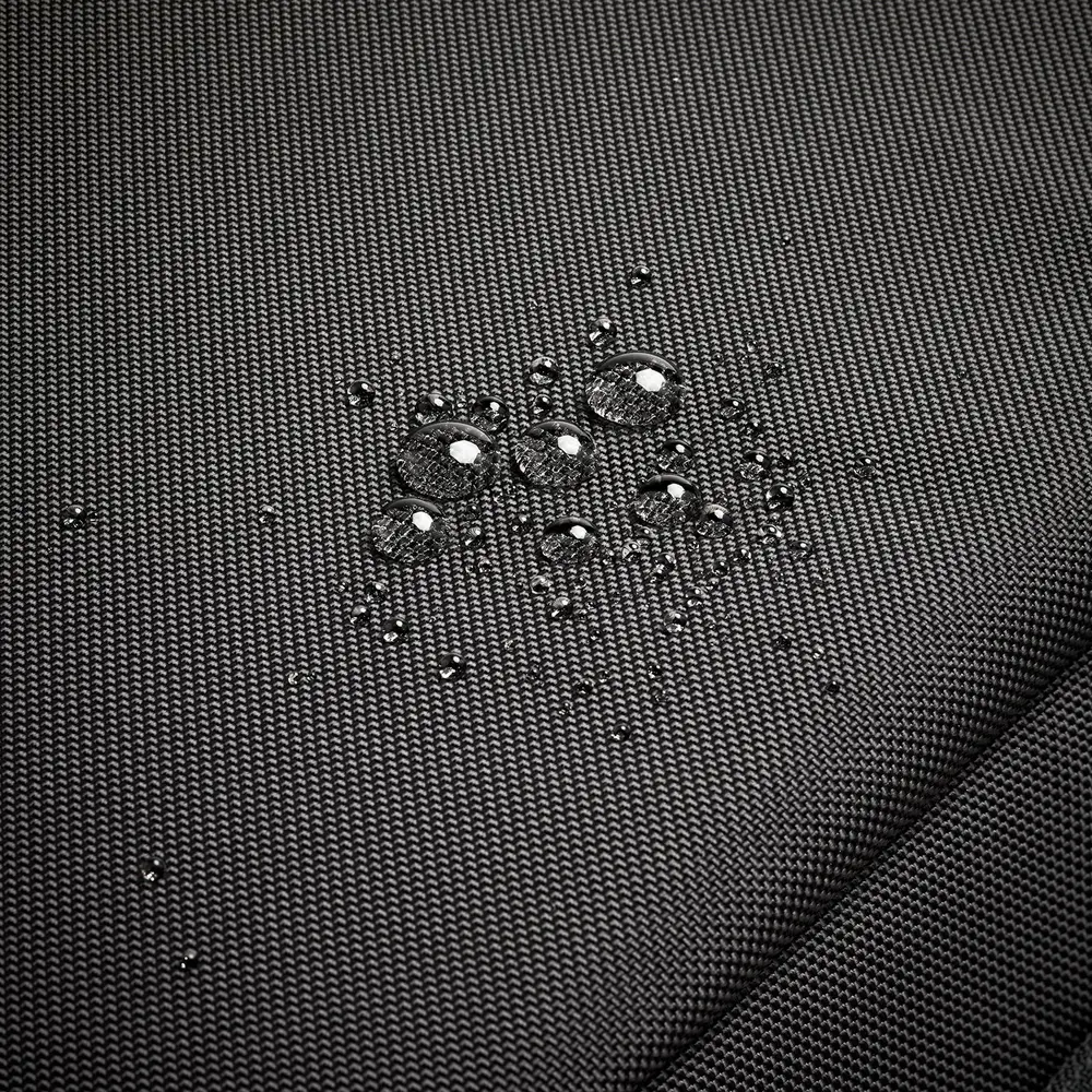 Alle äußeren Materialien sind behandelt, was die Tasche wasserabweisend macht, was durch die mitgelieferte Regenhülle bei widrigen Wetterverhältnissen noch verstärkt werden kann.
