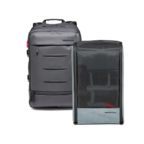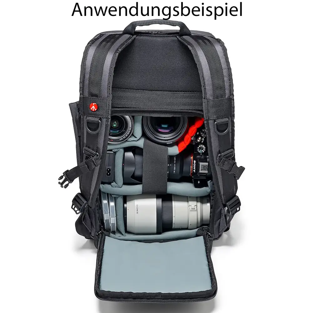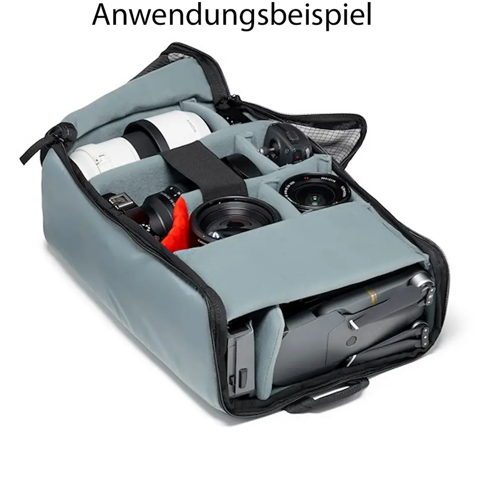 Der innere, herausnehmbare Einsatz mit Logo-Aufdruck kann herausgenommen werden, wodurch Sie praktischerweise eine zweite Tasche erhalten. Diese Tasche ist mit dem äußerst funktionalen, neuen „Flexy Camera Shell“ ausgestattet, einem innovativen Schutzsystem, das speziell von Manfrotto konzipiert wurde. Das smarte, klettbare Trennwandsystem schützt das Equipment effektiv und lässt sich mühelos an unterschiedlichste Foto-Equipment- Konstellationen und Body- oder Objektivgrößen anpassen.