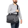 Der Speedy-30 ermöglicht außerdem die Mitnahme eines 14 Zoll Laptops und eines 9,7 Zoll Tablet PCs. Zusätzlich ist er mit einem stabilisierenden Gurt ausgestattet, der Ihre Ausrüstung beim Fahrradfahren sicher an ihrem Platz hält, so dass sie sich beruhigt auf den Straßenverkehr konzentrieren können. Wenn Sie den Gurt am beweglichen Schulterpolster anbringen, erhält dieser seine vollständige Funktion. Sollten Sie den Speedy-30 jedoch mit Ihrem Trolley verbinden wollen, können Sie den Gurt an seiner Rückseite befestigen. Sie können den Messenger also jeder individuellen Situation anpassen. Die sichere Mitnahme Ihres Stativs ist durch die NeverLose Stativ-Schlaufe möglich, an die Sie mittels eines Reißverschlusses gelangen, der sich am beschichteten Unterteil befindet. Verbinden Sie die Schlaufe einfach an der Front-Schnalle und schon sind Sie fertig. Sollten Sie Ihre Fotoausrüstung einmal nicht benötigen, können Sie einfach den Kameraeinsatz herausnehmen und die Messenger-Tasche als perfekte Alltagstasche verwenden.