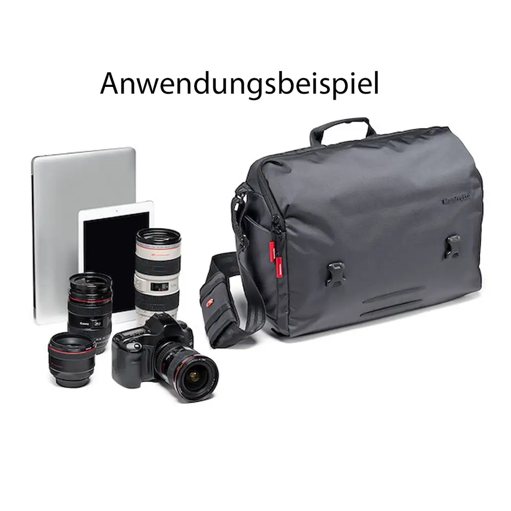 Dank des inneren, herausnehmbaren Einsatzes mit Logo-Aufdruck, kann in dem Speedy-30 Messenger eine mittelgroße DSLR mit aufgesetztem Standart-Zoomobjektiv und drei zusätzliche Objektiven verstaut werden. Diese Tasche ist mit dem äußerst funktionalen, neuen „Flexy Camera Shell“ ausgestattet, einem innovativen Schutzsystem, das speziell von Manfrotto konzipiert wurde. Das smarte, klettbare Trennwandsystem schützt das Equipment effektiv und lässt sich mühelos an unterschiedlichste Foto-Equipment- Konstellationen und Body- oder Objektivgrößen anpassen. Mit den roten, flexiblen Trennstücken können Sie die Tasche ganz individuell Ihren Bedürfnissen anpassen.