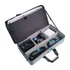 Gepolsterter Transportkoffer mit herausnehmbaren Trennelementen, Fach für die Leuchte innen im Deckel, Tragegriff, sowie Umhängegurt mit Schulterauflage und Rutschsicherung.