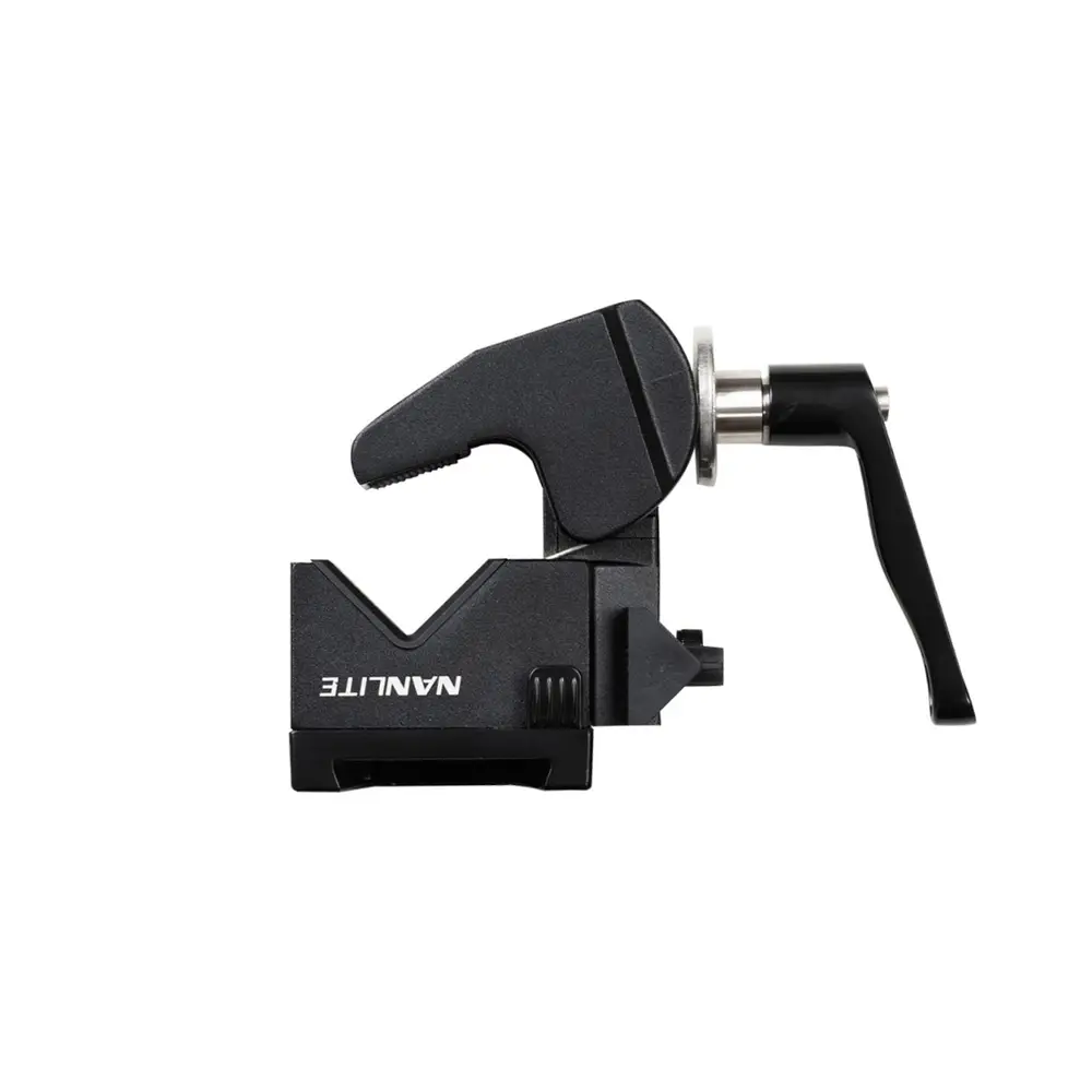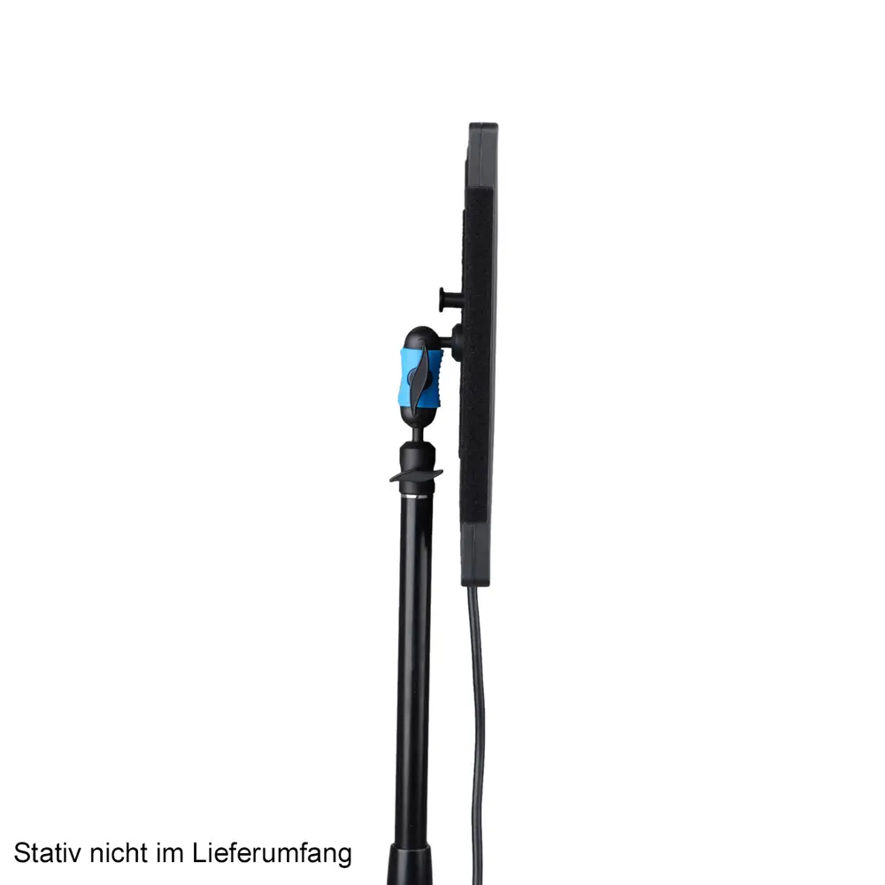 Leuchtenhalterung zur Befestigung der Leuchte auf Stativen und Halterungen mit 16 mm (5/8“)-Normzapfen. Mit zwei Kugelgelenken, die über eine einzige Flügelschraube fixiert werden sowie Befestigungsplatte, die über Schnellverriegelung an der Rückseite der Leuchte einrastet. Eine weitere mitgelieferte Leuchtenhalterung besteht aus einer Befestigungsplatte mit 16 mm (5/8“)-Normzapfen.