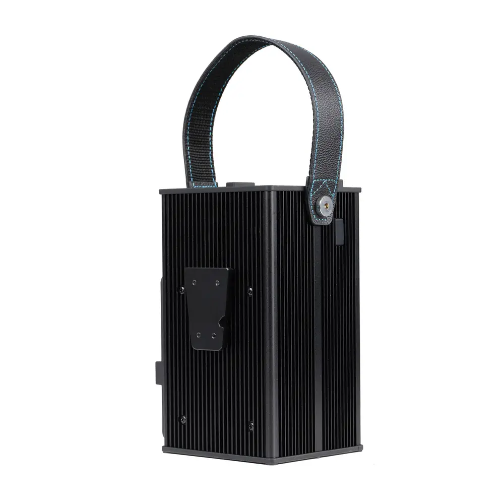 Akkubetrieb für den mobilen Einsatz mit einem V-Mount-Akku 14,4 – 14,8 V oder 26 V (jeweils optionales Zubehör). Befestigung an der Steuereinheit.