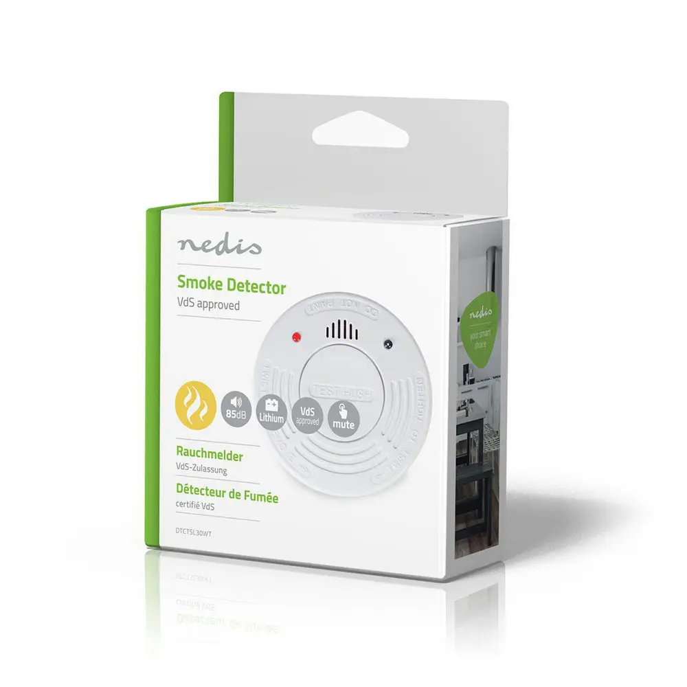 Dieser VdS-zertifizierte Nedis Rauchmelder garantiert ein Maximum an Sicherheit für Ihr Zuhause oder Ihr Büro, da Sie beim kleinsten Anzeichen eines Feuers alarmiert werden. Sowohl der Sensor als auch der integrierte Lithium-Akku haben eine Lebensdauer von 10 Jahren; der Rauchmelder benachrichtigt Sie, sobald ein Austausch erforderlich wird.Es ist wichtig, regelmäßig zu überprüfen, ob der Rauchmelder ordnungsgemäß funktioniert. Der Einfachheit halber verfügt dieser VdS-zertifizierte Rauchmelder an der Vorderseite über eine große Taste, mit der der Alarm getestet bzw. stumm geschaltet werden kann.