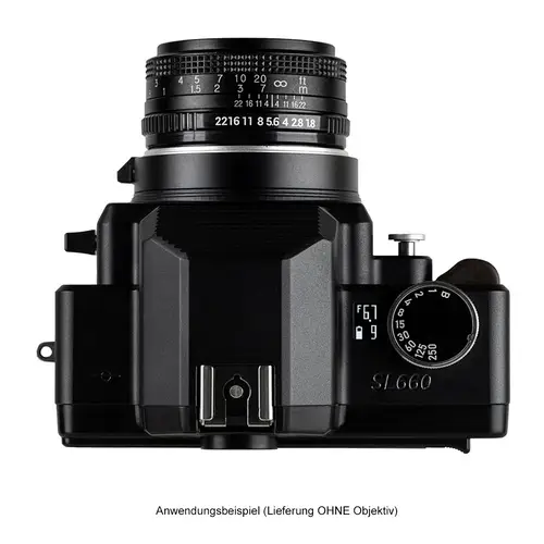 Die SL660 verfügt über ein eingebautes optisches System mit drei mehrfach vergüteten optischen Gläsern, das das Bildfeld von Vollformatobjektiven auf das Mittelformat 6X6 erweitert.