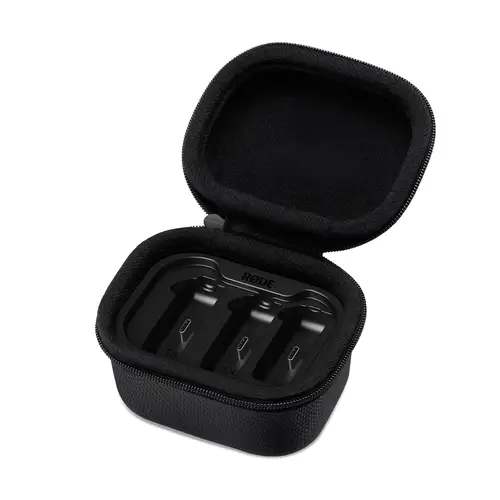 Das robuste, 10 cm breite und mit genarbtem Kunstleder bezogene Reißverschluss-Case eignet sich ideal zum sicheren Aufbewahren, Transportieren und Aufladen des Wireless GO (Gen 3) Systems, es bietet Steckplätze für beide Sender und den Empfänger. Im Case lassen sich die drei Module gleichzeitig aufladen – sowohl zu Hause als auch unterwegs.