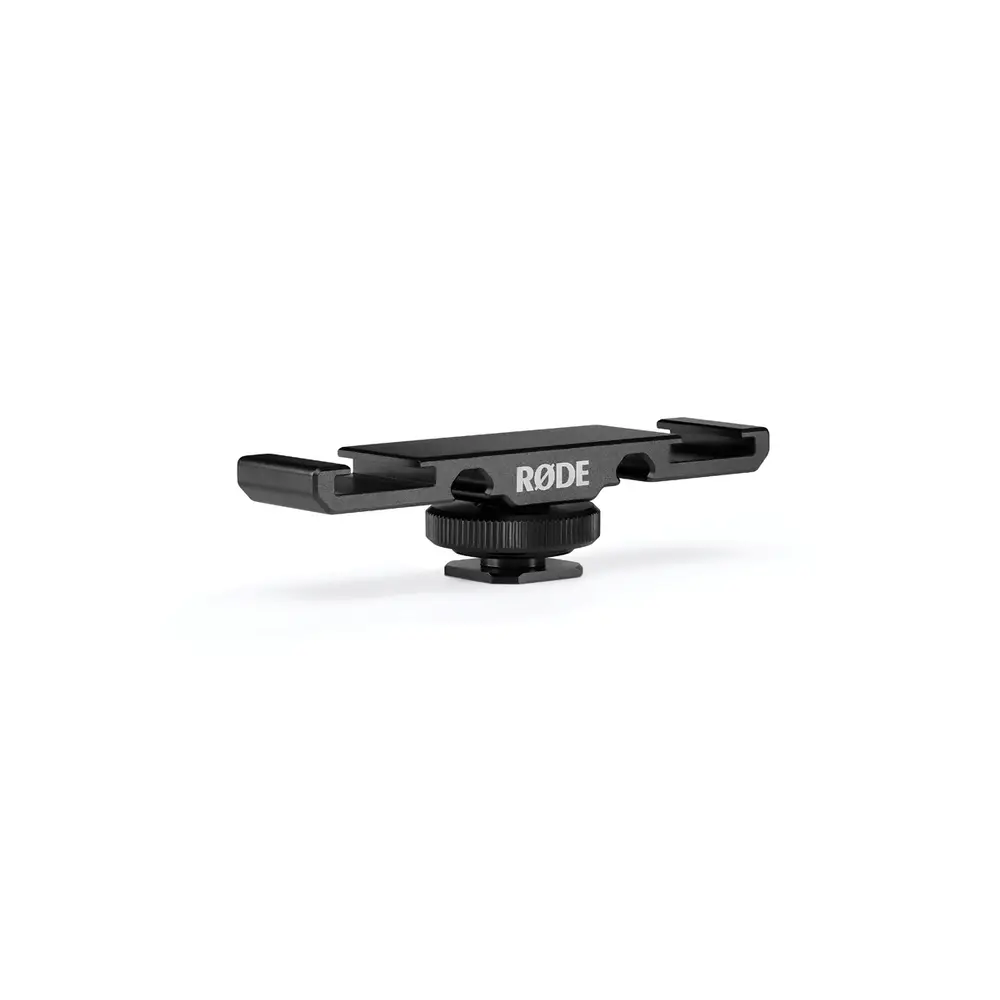 Produktmerkmale • zur Montage an einem Standard-Blitzschuh • erlaubt die Befestigung von zwei Wireless-GO-Empfängern an einer Kamera • eignet sich auch für zwei VideoMics oder Kombination Empfänger/VideoMics • ideal in Verbindung mit optionalem Y-Kabel „SC11“ • stabile Aluminium-Konstruktion • große Rändelmutter zum arretieren • auf der Unterseite integrierte Kabelführungen • im Blitzfuß eingelassenes 1/4" Gewinde zur alternativen Stativmontage • Abmessungen (BTH): 92 x 21 x 22 mm • Gewicht: 42,7 g