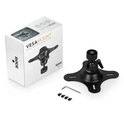 Robuster und 400 g schwerer Adapter mit 3/8“-Gewindeanschluss, mit dem sich Geräte (Flachbildschirme, LCD-Monitore etc.) sicher an einem Mikrofonstativ oder Studioarm befestigen lassen. Voraussetzung hierfür ist, dass sie auf der Rückseite das standardisierte 75x75 oder 100x100 mm VESA Lochmuster aufweisen.Bei RODE trifft dies auf die Podcast-Konsolen RODECaster DUO und RODECaster Pro II zu. Der integrierte 360° Kugelkopf des VESA Mount erlaubt eine flexible Positionierung des montierten Geräts, mit dem Schnellverschlusshebel lässt es sich anschließend bequem fixieren.Ein Sechskantschlüssel und vier passende Montageschrauben werden mitgeliefert.