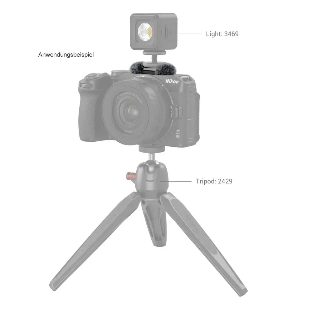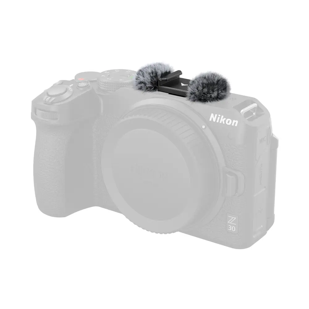 Der Windschutz kann mit dem Nikon Z 30-Käfig/der Grundplatte/der L-Halterung (für vertikale Aufnahmen) verwendet werden und ist mit Geräten mit Blitzschuhhalterungen kompatibel.